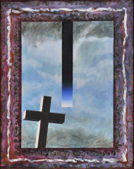 He works tirelessly in an effort to construct his pictures as solidly as finely built cabinetry or well-cobbled footwear. His paintings abound with wit; his sense of the absurd is ever present; but this is an artist who, through long years in the trade, has learned his stuff, and his canvasses constitute a veritable compendium of painterly knowledge. Lawrence is a Post-Modernist who knows what he is about. He claims that in his pictures, the questions they engage are to him more important than any answers they might advance. Lawrence asks wonderful questions!"